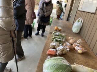 シルバーさんが寒い中収穫して下さった野菜🥦が並んでいたのは一瞬で、開店前から並んでいたお客さんのカゴに瞬く間に吸い込まれていきました(^^)