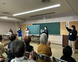 催しは豪華で、市長挨拶のあとには県健康づくりリーダーによる体操と、𠮷原マジッククラブのショー、そして花梨かみのの脳トレでした。