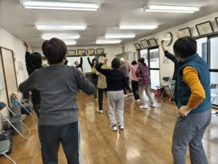 脳トレを組み込んだ体操に皆さん笑いでごまかしながら楽しく取り組んでいます。