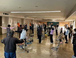 ベテランの体操の先生の掛け声と共に皆さんが気持ちよく体を動かしていました。