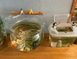 おしゃれな店内では、人形の猫やペンギンが魚つり?をしていました。
