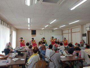 今日はフラダンスの会の方がお見えになって いて、レイヤ髪飾りを参加者も