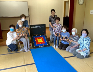 こちらは五郎丸(56)でクロリティ(96)の集まりです。応援し合ったり、脳トレもします。今回は市役所ロビーにてつどいの場のパネル展が開催されますので、写真撮影をさせていただきました。