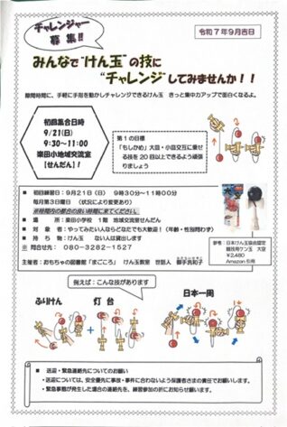 けん玉やってみたい人、楽田小学校交流室に