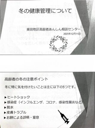 インフルエンザ対策と血圧について講話しました。毎年恒例のビンゴゲームで盛り上がりました