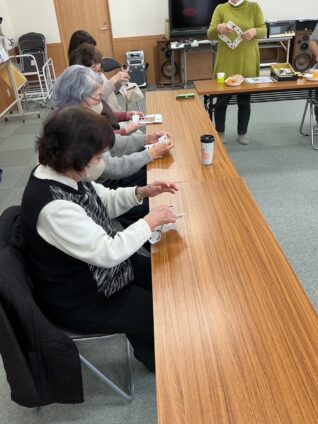 懐メロにあわせた体操で体を動かした後、表裏の図柄を合わせるパズルを作って頭の体操を行いました。