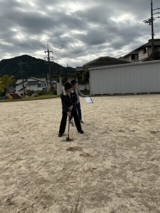 まずはリズムに合わせながら互いに棒を引っ張り合う脳トレを行っていました。