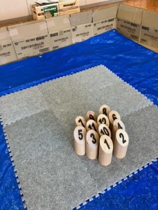 市の補助金でモルックを購入しました 10人が2つのグループに分かれ、対戦しました