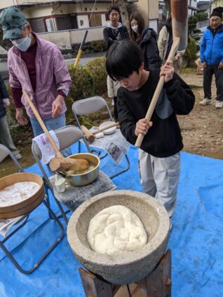 当日は近所の老若男女が集まり、古くから続く日本の風習、もちつきが行われていました。