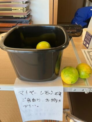 世話人さんが自宅で採れたマイヤーレモン🍋を持って来てくれました。