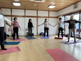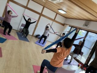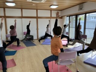 今日の参加者は8名。腓腹(ふくろはぎ)や肩甲骨のストレッチから始まりました。