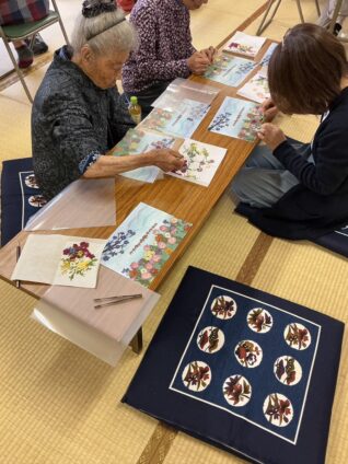 今回は押し花の先生をお呼びして押し花教室を開催されていました。